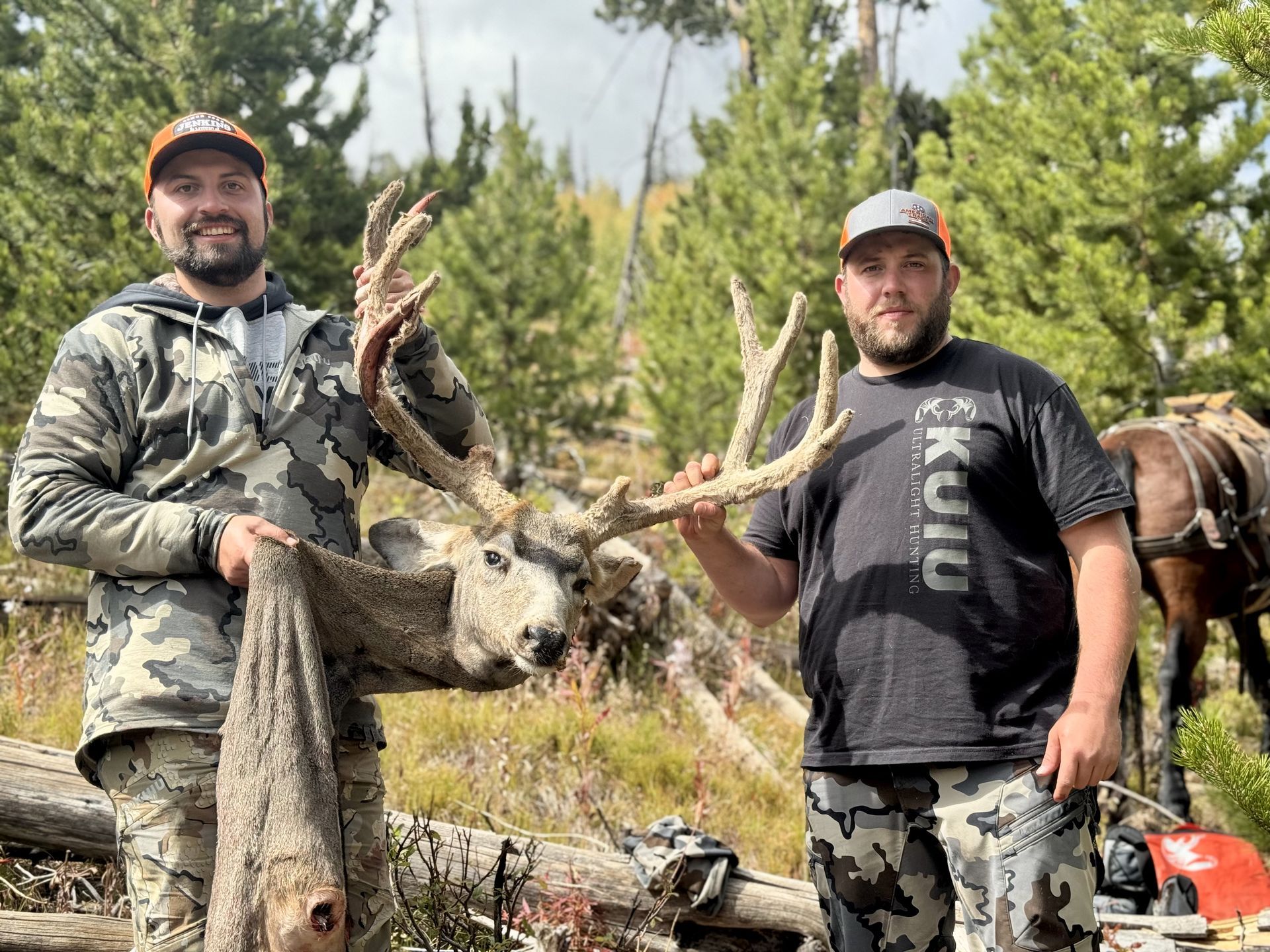 We had the honor of chasing a true Wyoming Giant again this year, a buck that was well over 40 inches wide. What an adventure that hunt was! The buck lived in a grueling area to hunt. Hats off to the guides and hunters who fought hard trying to get him. One of our guides actually got hung up in the stirrup on his horse and drug down the trail while hunting the 40 inch giant. A very accomplished rider (or an angel from the Lord) came riding out of the darkness and saved our guide’s life. A true miracle! Nothing else matters besides that our guide is safe. God was certainly watching over him! We are beyond grateful to the rider in dark. We ended up not killing that giant deer, but we’ll be chasing him again next year!